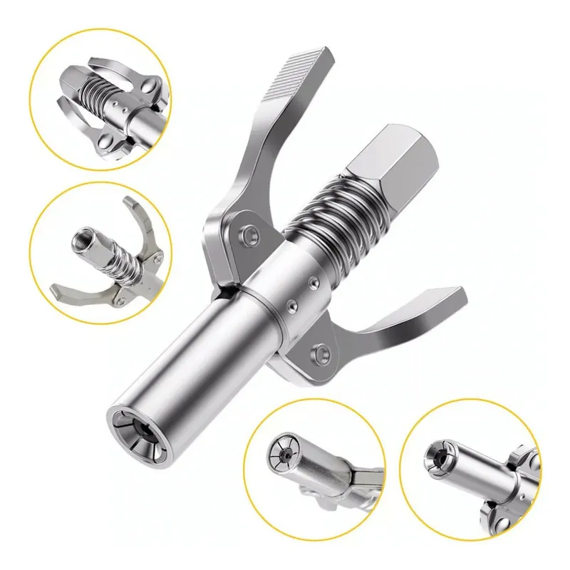 O Bico Injetor Graxa para Pistola de Engraxar Yamaguchi Original é um acessório essencial para profissionais que buscam eficiência e praticidade na lubrificação de máquinas e equipamentos. Com um design ergonômico, este acoplador hidráulico com engate rápido permite que um único operador realize a lubrificação de forma ágil e segura. Fabricado em aço e ferro galvanizado, garante durabilidade e resistência, suportando uma pressão máxima de até 10.000 PSI (689 Bar). A rosca de 1/8" NPT proporciona uma conexão firme e confiável. Este modelo, Y001.4069, é ideal para quem precisa de uma pistola engraxadeira pneumática de alta performance. Além disso, sua portabilidade facilita o transporte e uso em diferentes locais de trabalho, tornando-o uma escolha prática para profissionais da linha profissional.