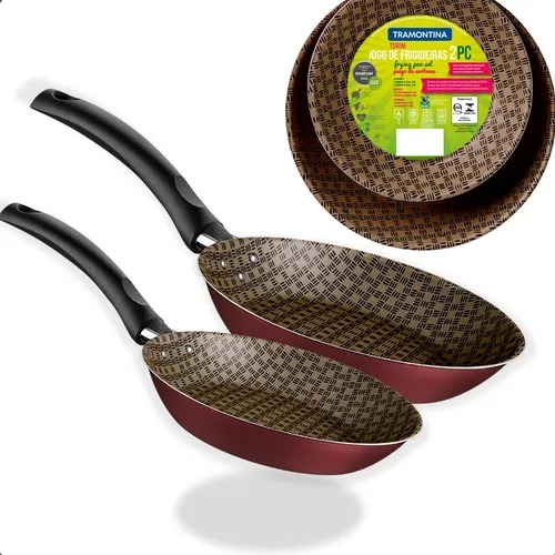 As refeições ficarão muito mais práticas com o jogo de frigideiras Tramontina Turim em alumínio com revestimento interno e externo em antiaderente Starflon Max vermelho 2 peças. As peças são produzidas em alumínio com espessura que garante o cozimento rápido e uniforme dos alimentos. O revestimento interno e externo é em Starflon Max, antiaderente que não gruda, é fácil de limpar, mais durável e não prejudicial à saúde. Os cabos são em baquelite antitérmico, material que não aquece e oferece maior segurança durante o manuseio. Elas ainda podem ir à máquina de lavar louças e vão tornar a limpeza ainda mais fácil! RECOMENDAÇÕES DE USO: - A capacidade volumétrica máxima para cozimento é de 3/4 da capacidade total da peça. - Utensílios quentes devem estar fora do alcance das crianças. - Seus utensílios Starflon estão prontos para uso com ou sem gordura, sempre em fogo baixo ou médio (nunca superior a 260 ºC). - Para mexer os alimentos use somente utensílios de silicone, nylon ou madeira. - Nunca utilize produtos abrasivos na lavagem. - Se deixar queimar alimentos, umedeça a área e reserve até que possa remover os resíduos grudados com esponja e sabão. CARACTERÍSTICAS DO PRODUTO: - Corpo de alumínio com espessura de 1,2 mm que proporciona cozimento rápido e uniforme. - Revestimento interno e externo de antiaderente Starflon Max que não gruda, é fácil de limpar, mais durável e não é prejudicial à saúde, pois é livre de PFOA. - Cabos de baquelite antitérmico que oferecem segurança durante o manuseio. - Podem ir à máquina de lavar louças facilitando seu dia a dia. ESPECIFICAÇÕES TÉCNICAS: - Marca: Tramontina - Modelo: Turim - Cor: Vermelha - Material: Alumínio - Selo antiaderente Nonstick - Certificado Inmetro: 001793/2018 DIMENSÕES DO PRODUTO: PEQUENA: - Diâmetro: 17cm - Litros: 0,4L MÉDIA: - Diâmetro: 21cm - Litros: 0,8L PESO TOTAL: 310g CONTEÚDO DA EMBALAGEM: - 1 Jogo de Frigideira Turim
