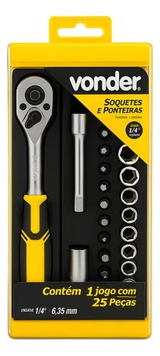 Jogo de Soquetes e Ponteiras Vonder – 25 Peças (Encaixe 1/4" – 6,35 mm)